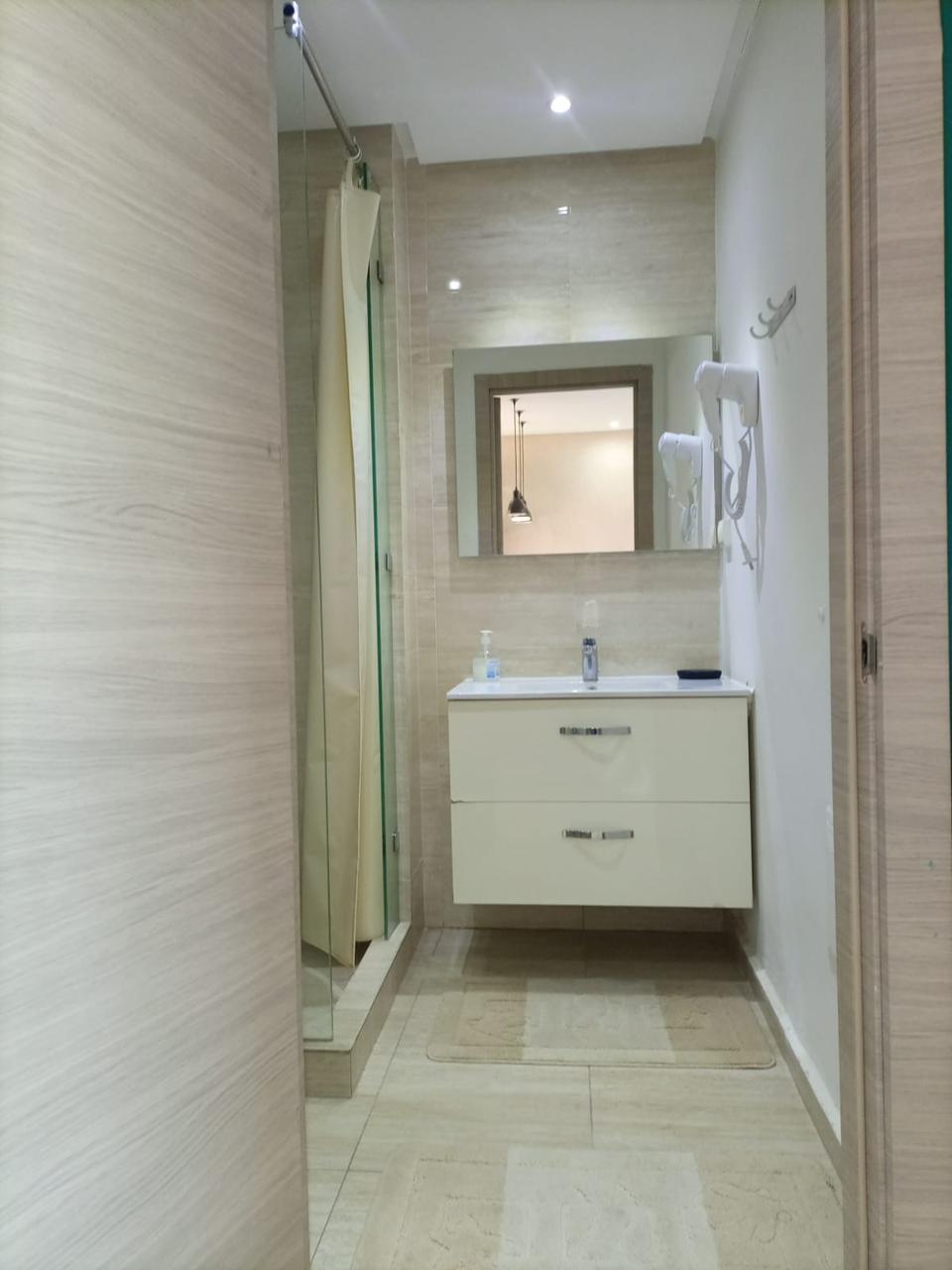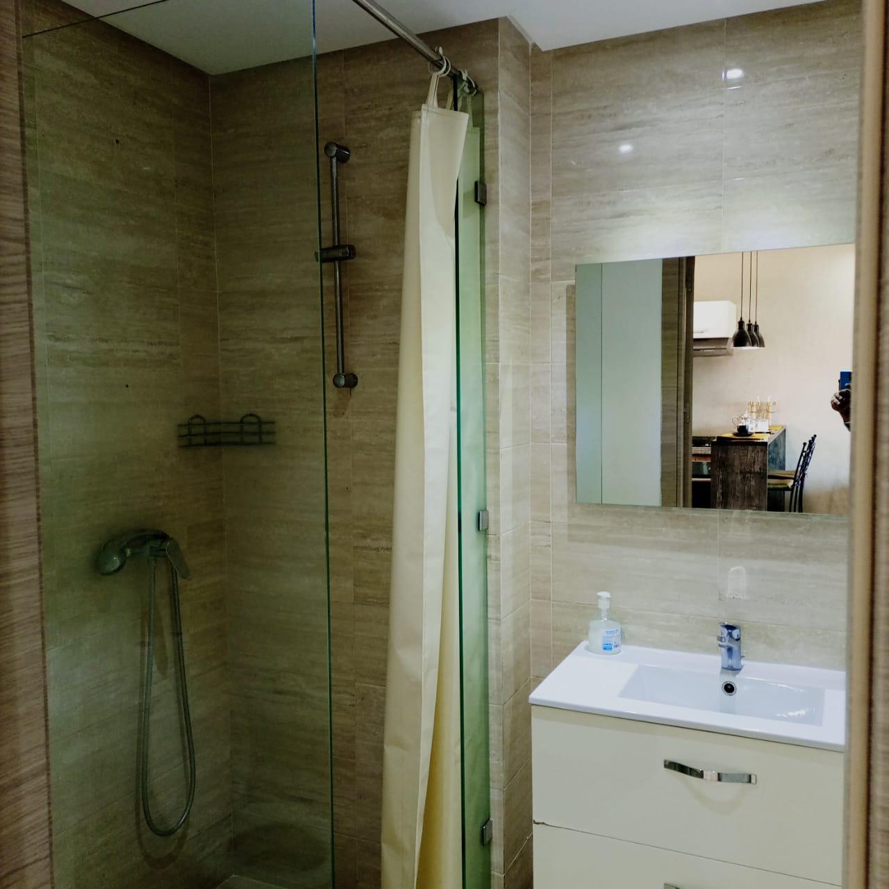 Finitions soignées, douche pratique et équipements de qualité.