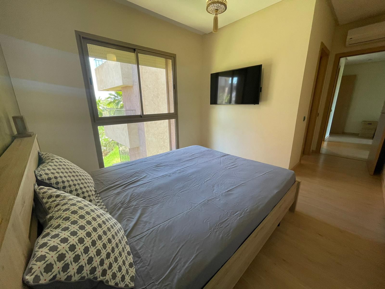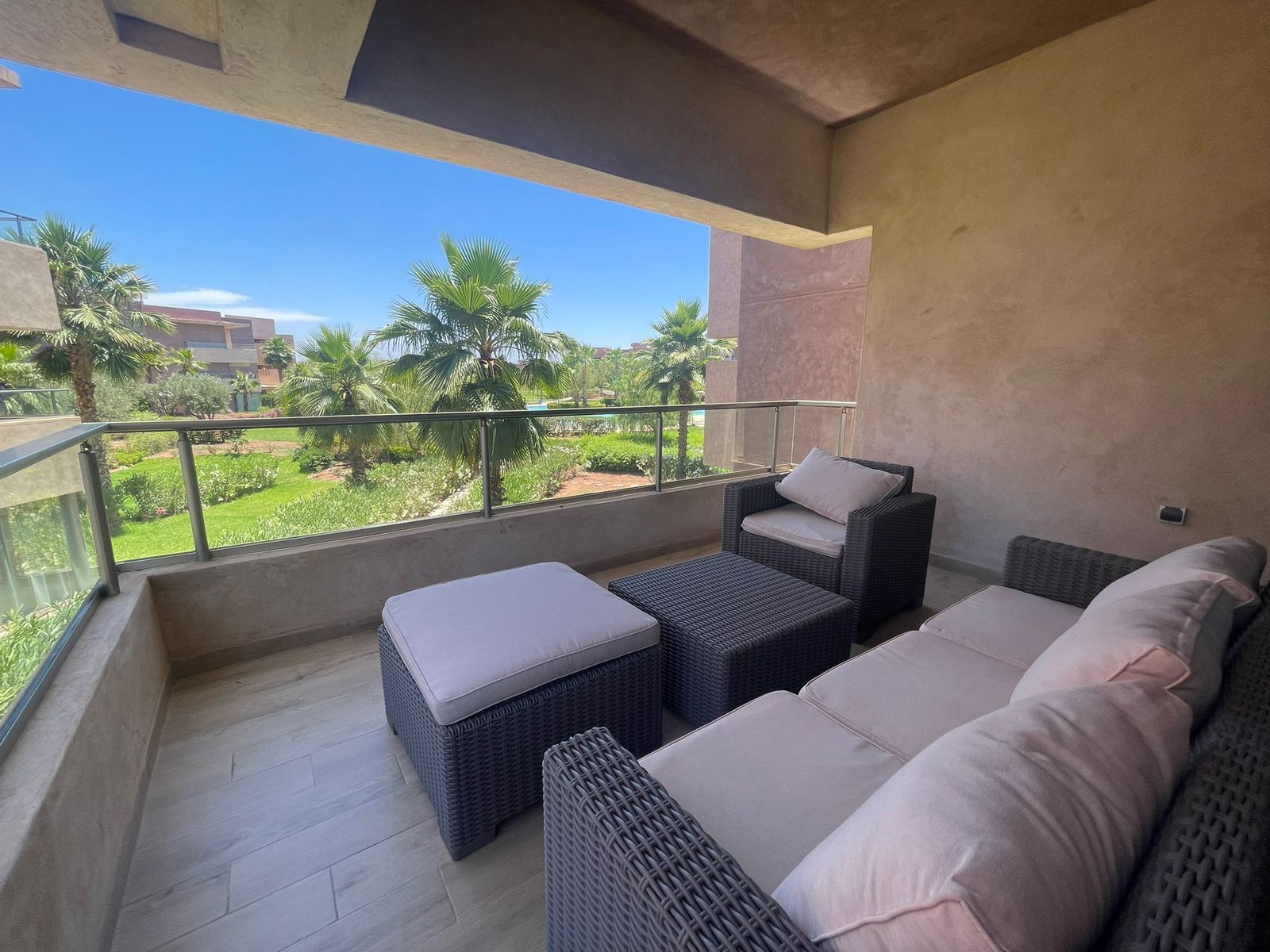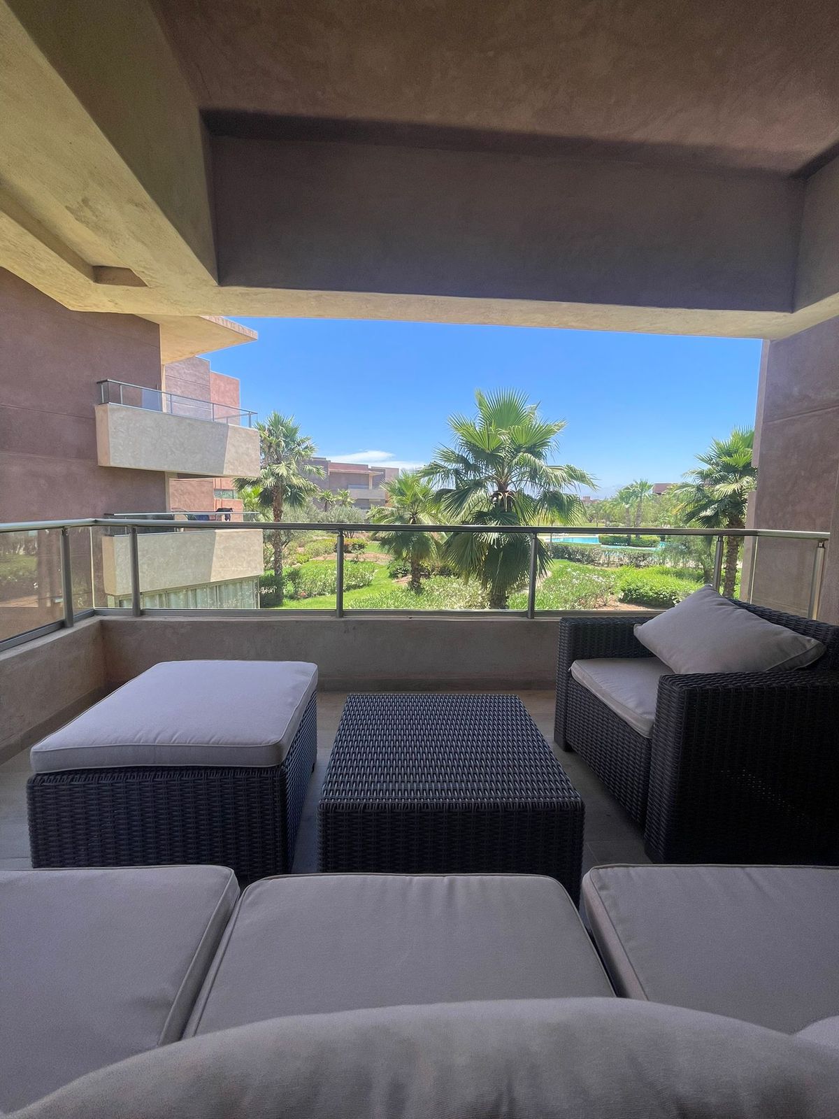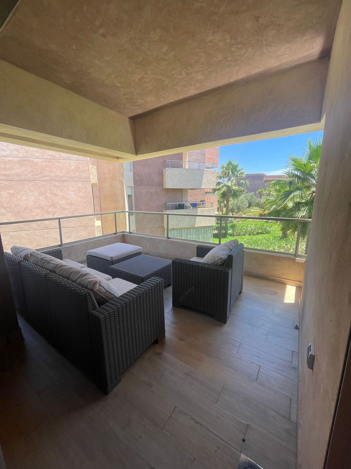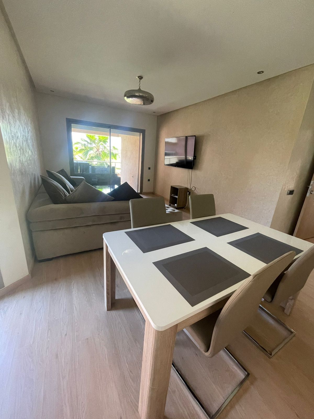Superbe appartement lumineux situé dans la résidence sécurisée Prestigia – Entrée Opale, à seulement quelques minutes du centre de Marrakech (temps jusqu’au centre-ville : 10 minutes).