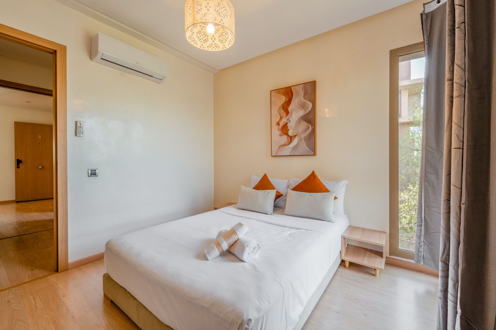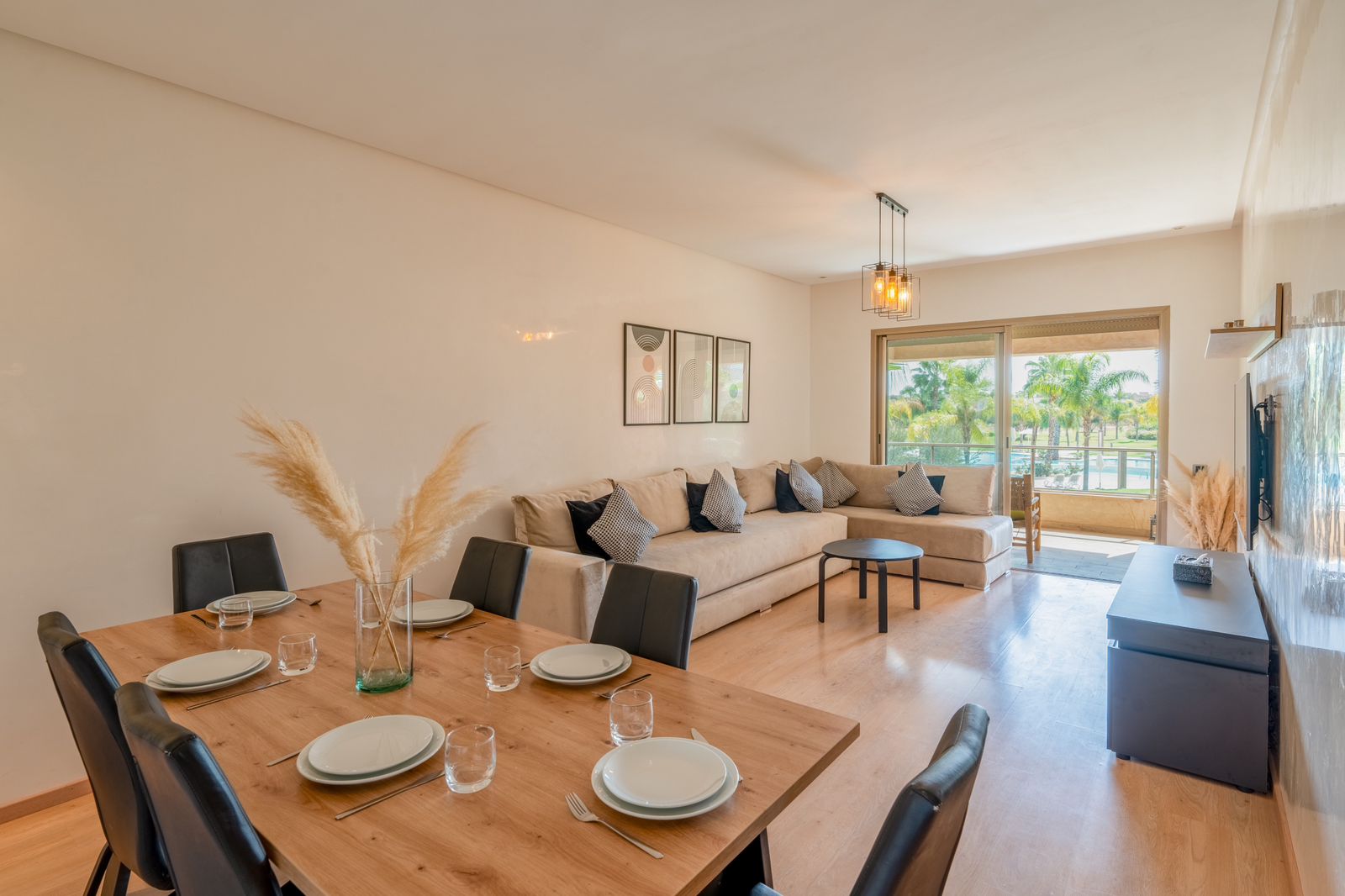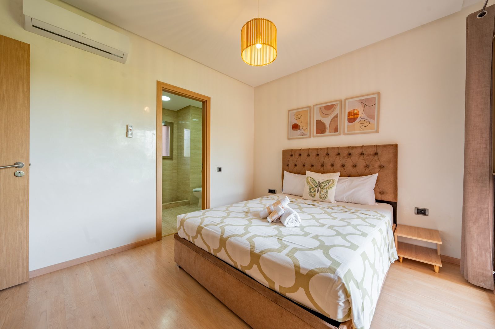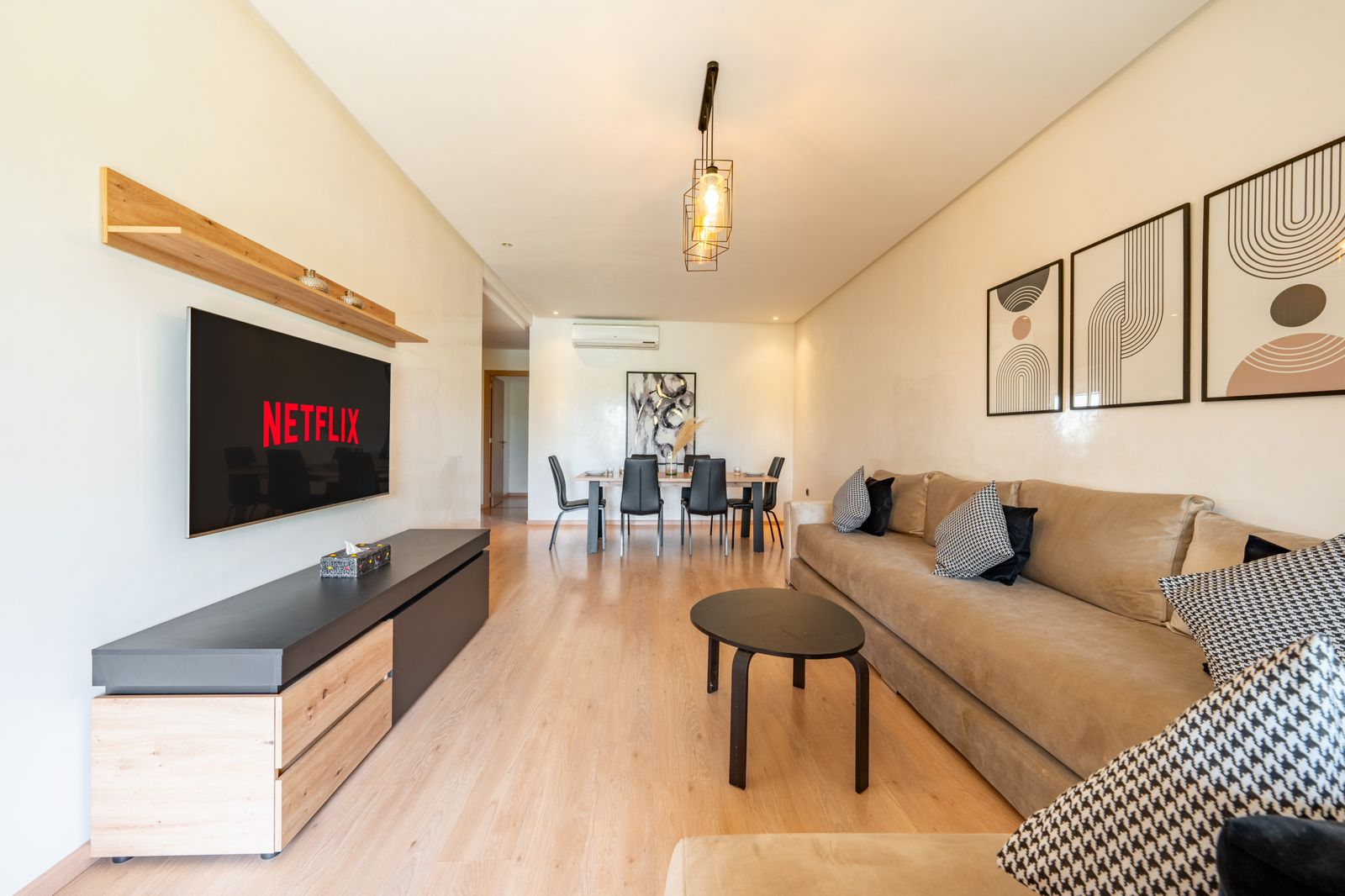 Situé dans la résidence sécurisée Prestigia – Entrée Opale, cet appartement au 1er étage offre un cadre lumineux, moderne et parfaitement adapté aux séjours en famille, entre amis ou professionnels. Sa vue dégagée et son ambiance chaleureuse en font un lieu idéal pour profiter pleinement de Marrakech.