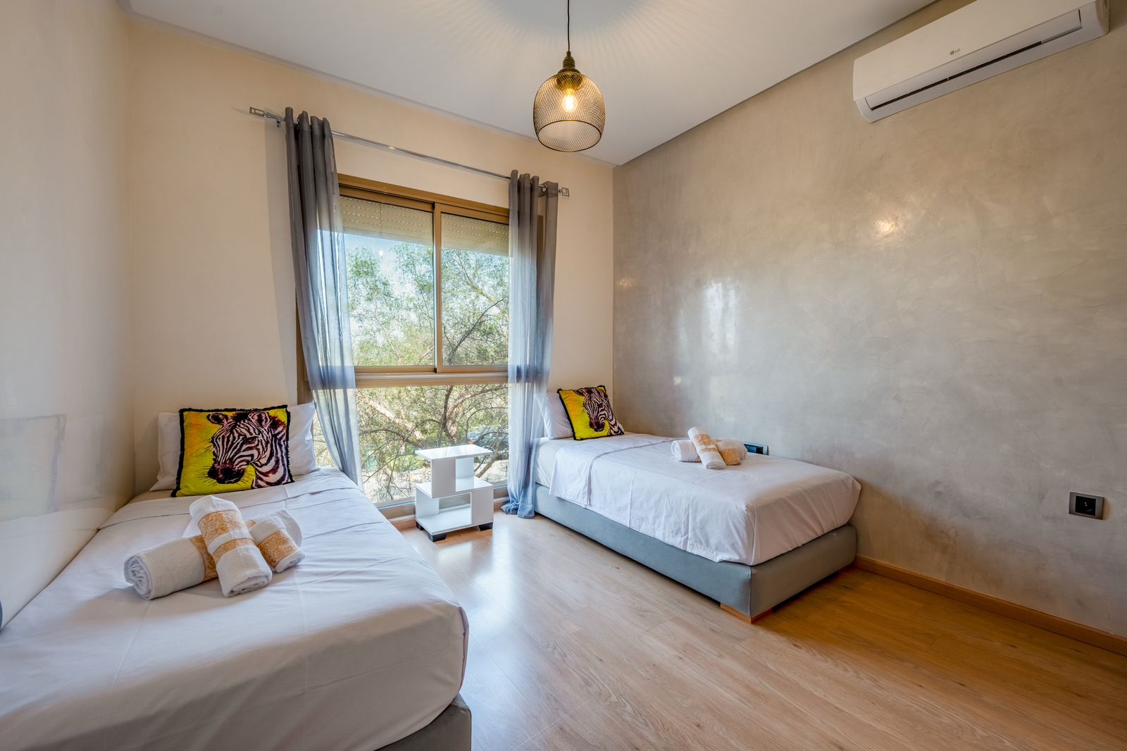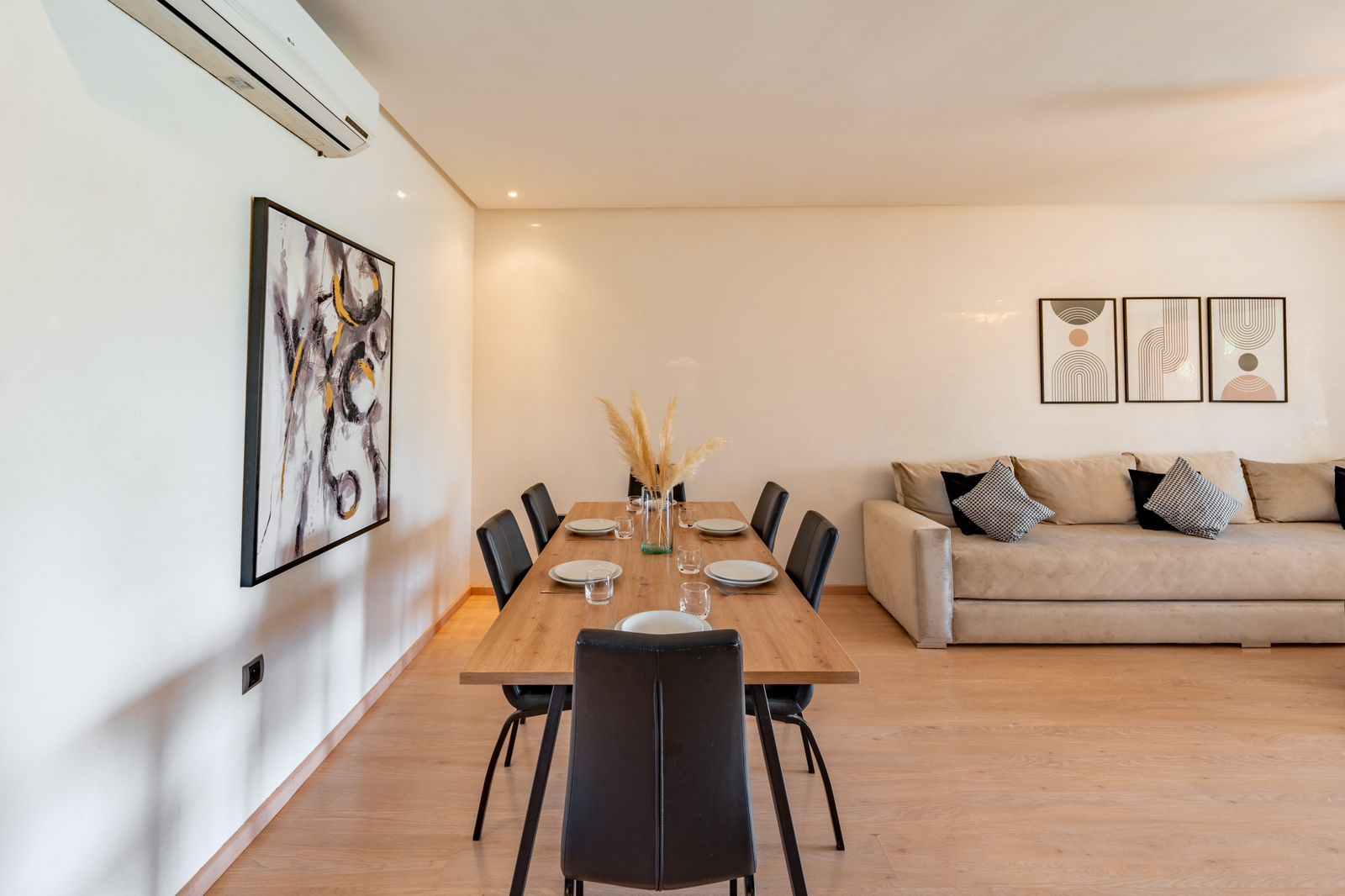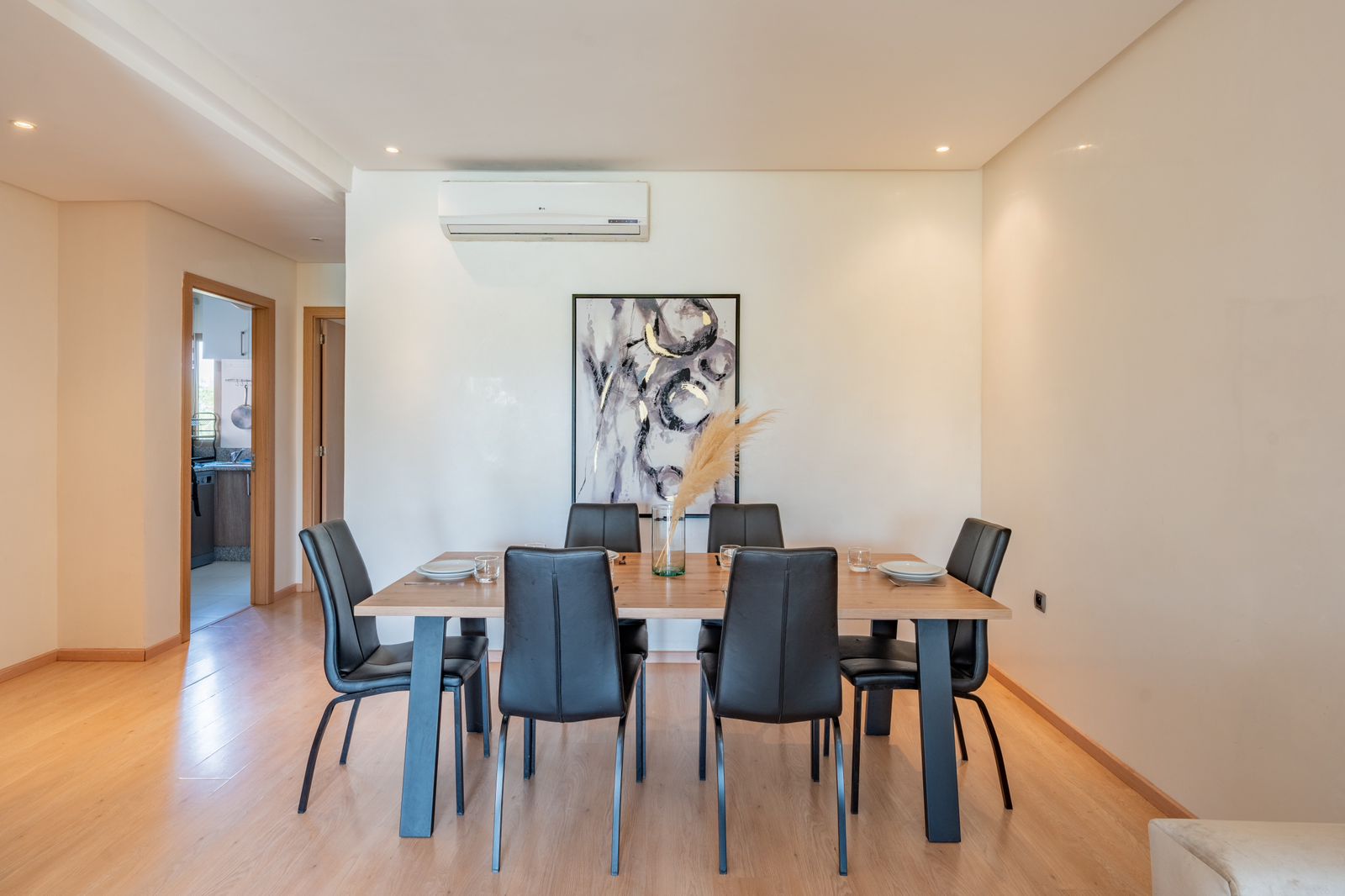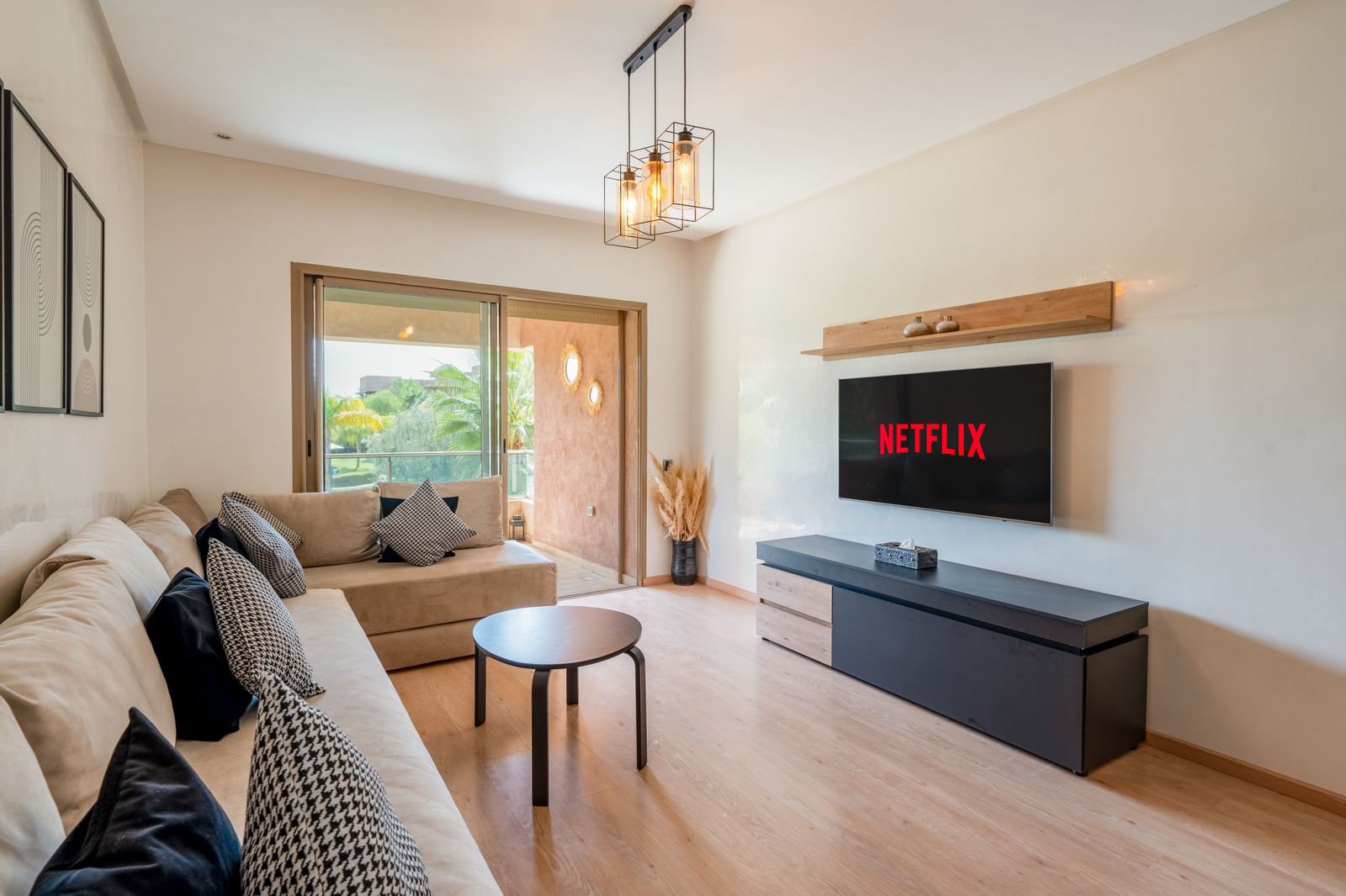 Situé dans la résidence sécurisée Prestigia – Entrée Opale, cet appartement au 1er étage offre un cadre lumineux, moderne et parfaitement adapté aux séjours en famille, entre amis ou professionnels. Sa vue dégagée et son ambiance chaleureuse en font un lieu idéal pour profiter pleinement de Marrakech.