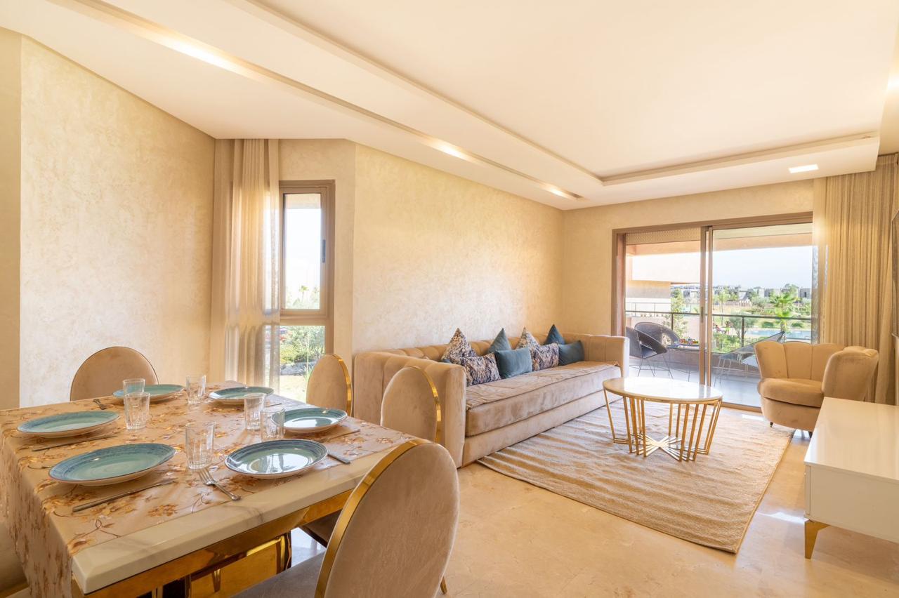 Découvrez ce splendide appartement situé dans la prestigieuse résidence Prestigia Saphir, à quelques minutes du centre de Marrakech et du golf. Niché au rez-de-jardin, il offre un cadre de vie alliant élégance, confort et tranquillité.