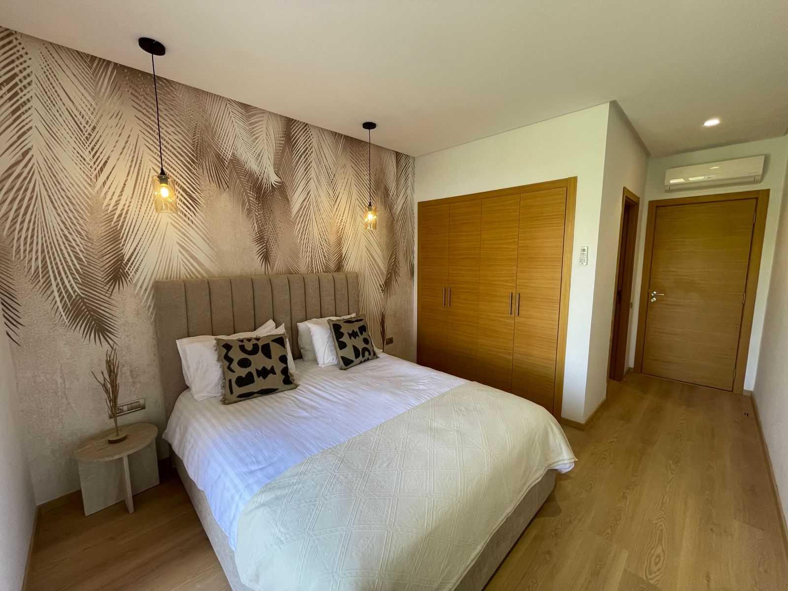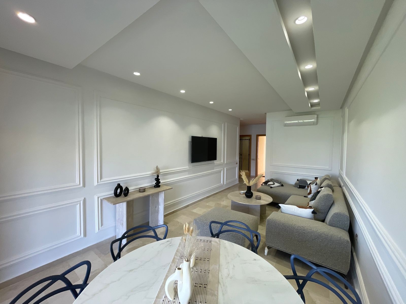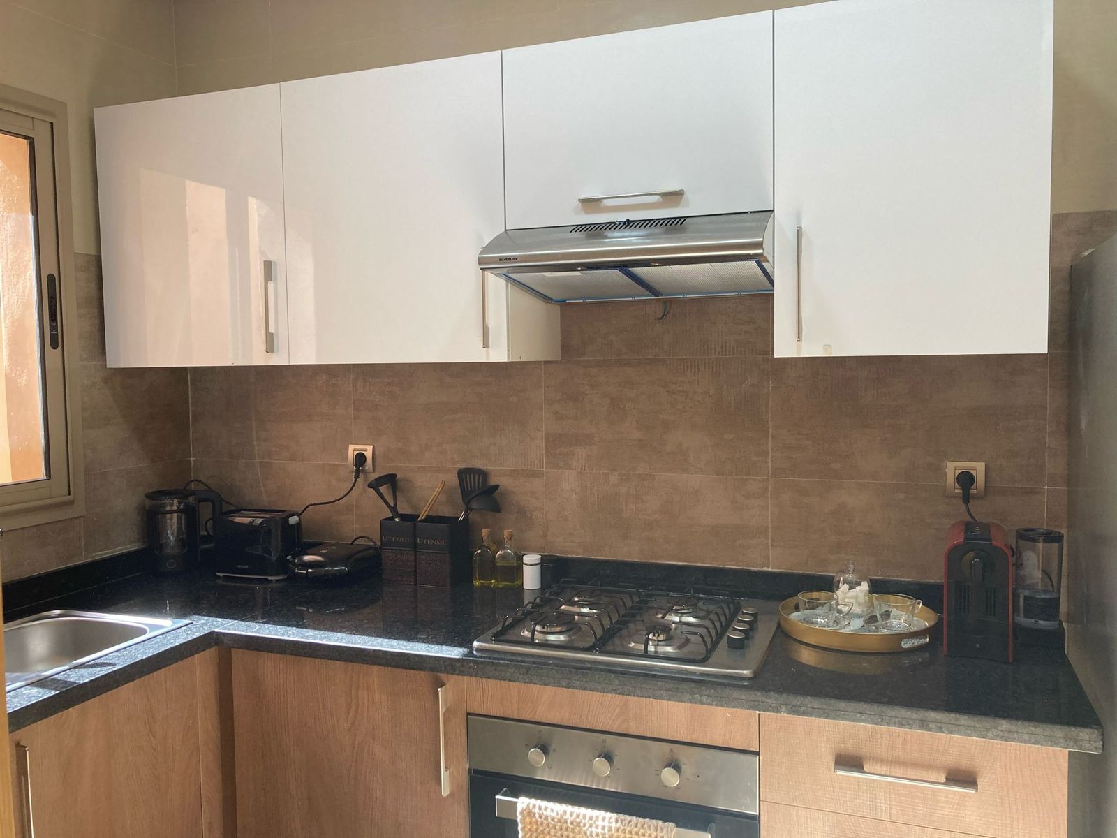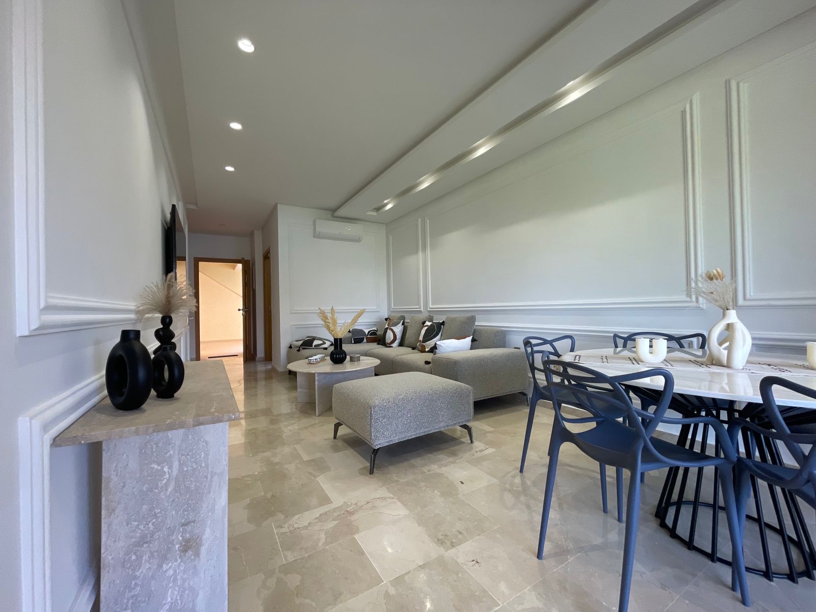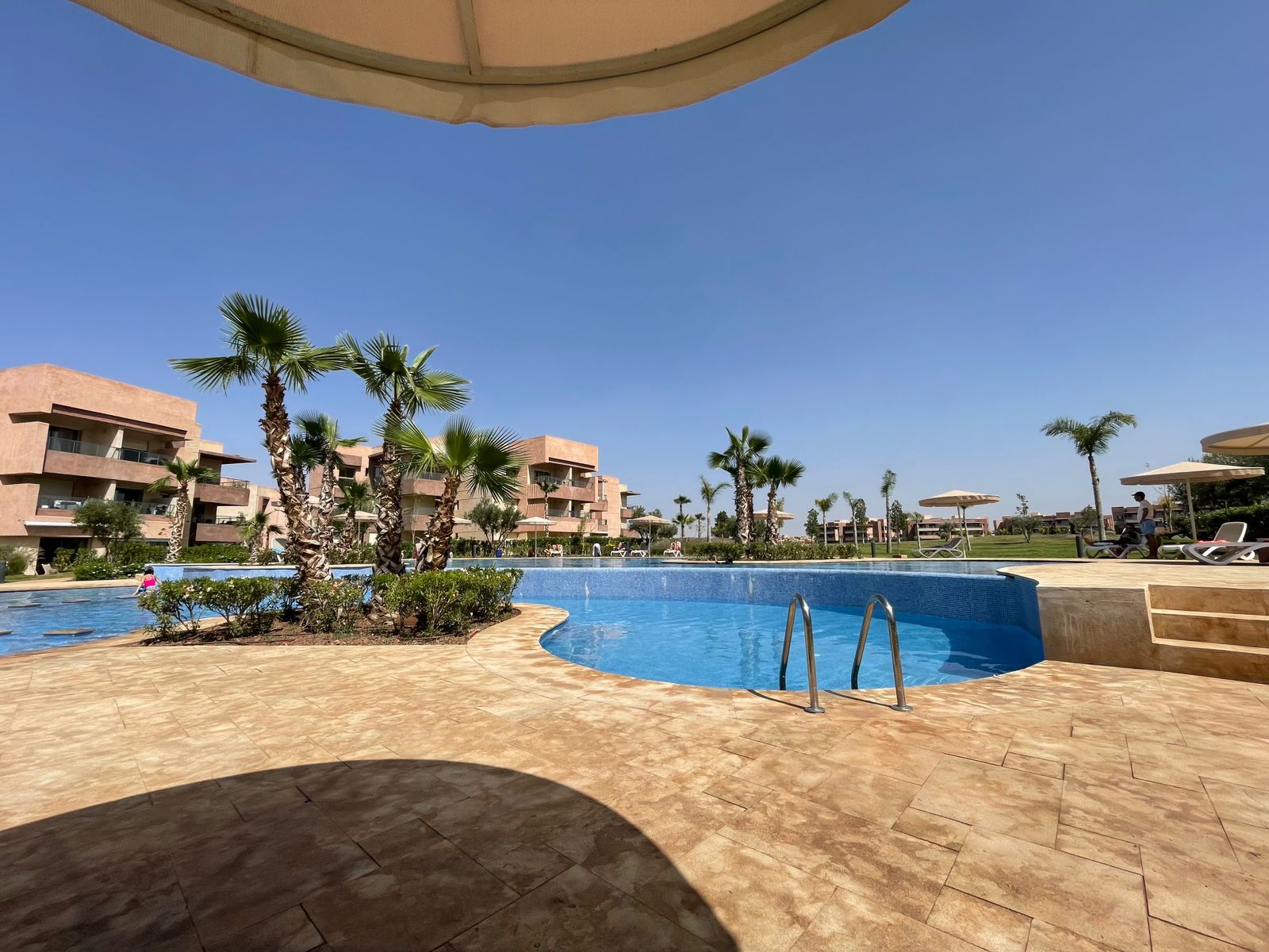 Bel appartement moderne situé en rez-de-jardin dans la résidence sécurisée Prestigia – Entrée Saphir, à seulement 10 minutes du centre de Marrakech.