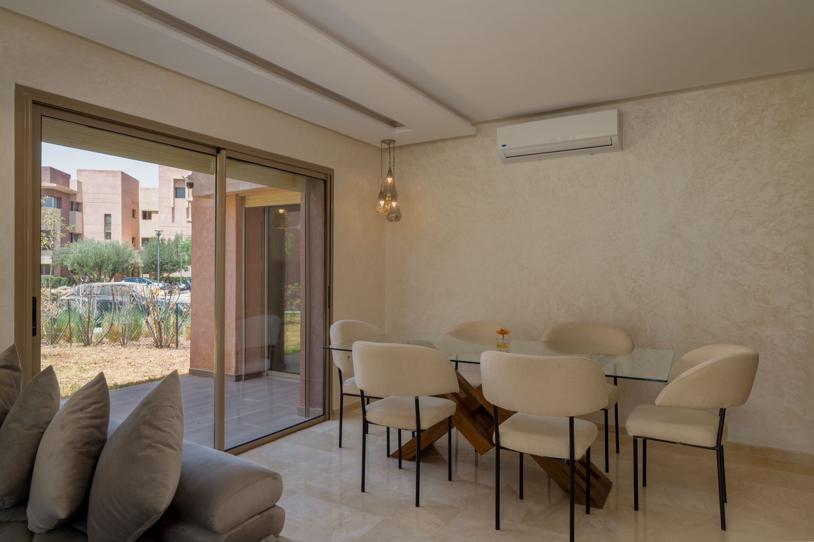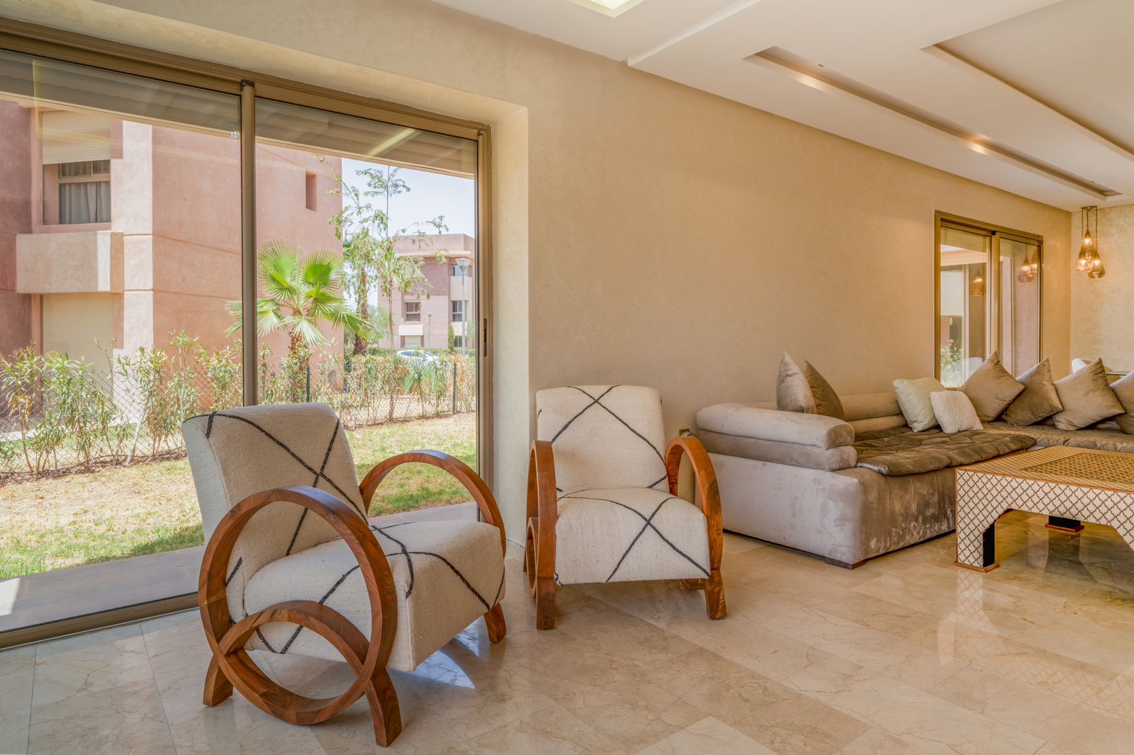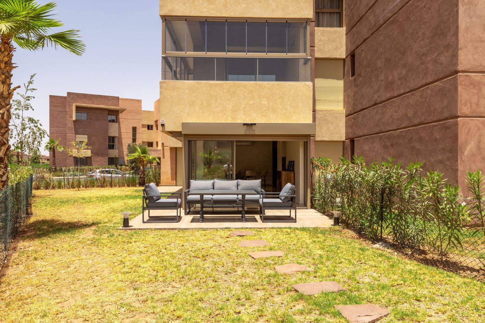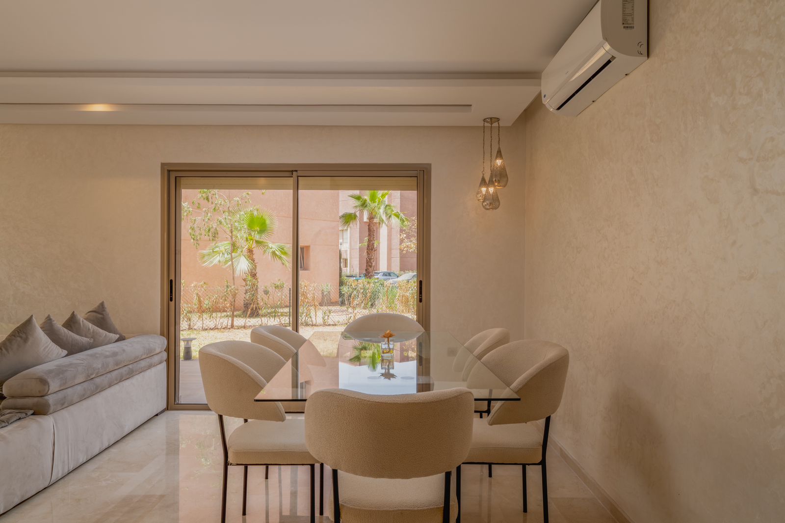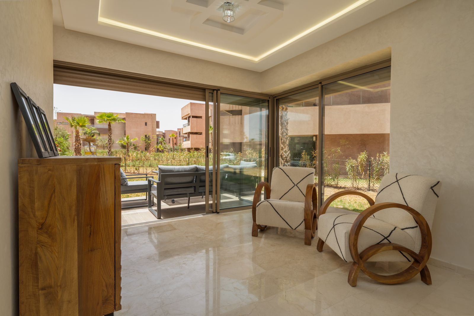 DĂ©couvrez ce superbe appartement en rez-de-jardin, situĂ© dans la rĂ©sidence sĂ©curisĂ©e Prestigia â EntrĂ©e Saphir, Ă quelques minutes du centre de Marrakech.