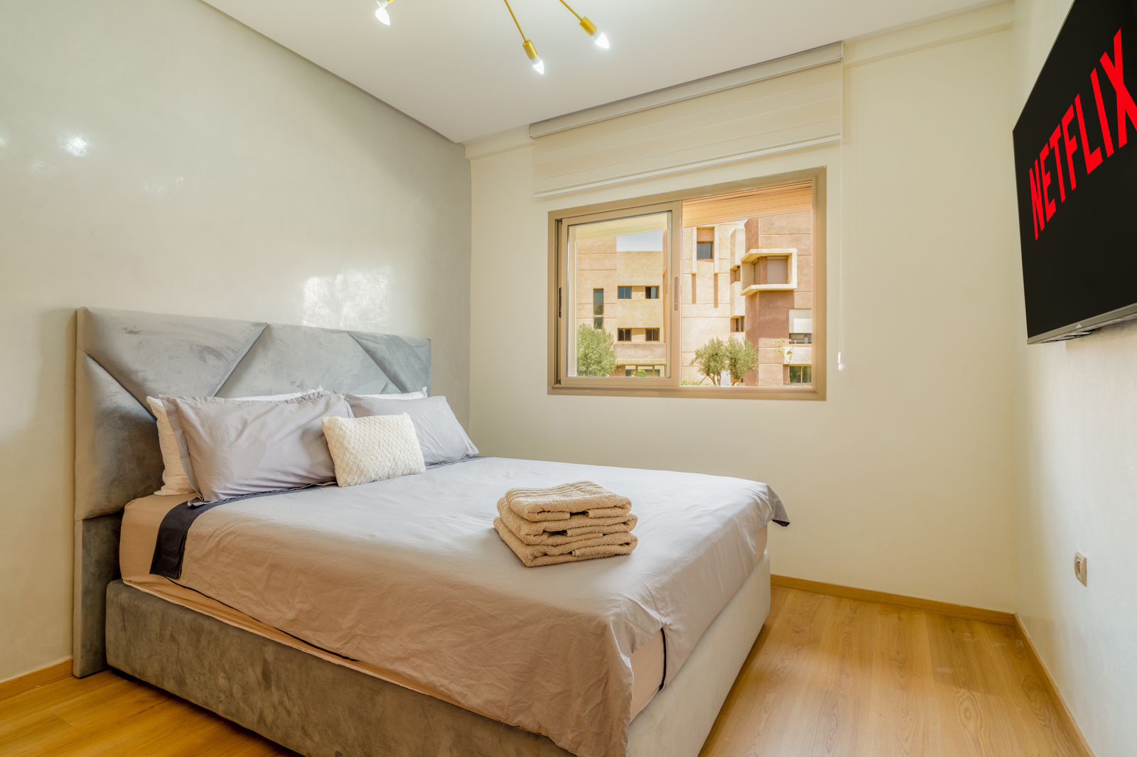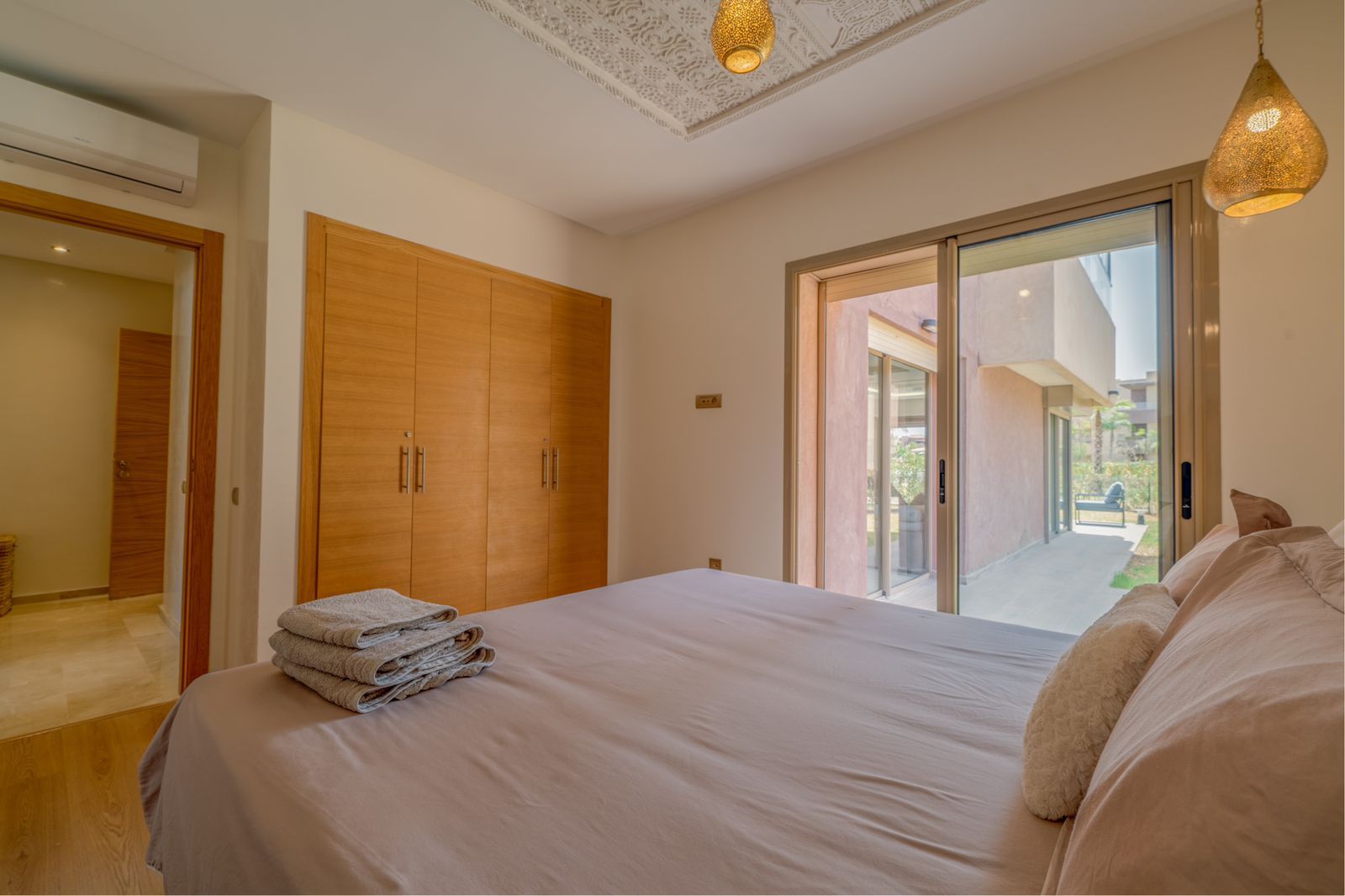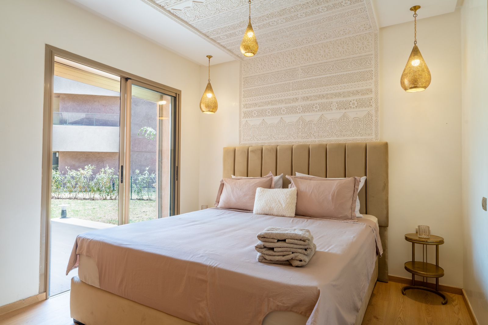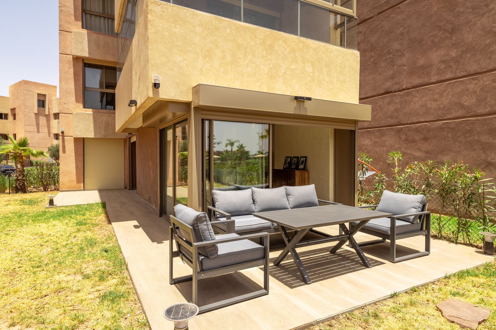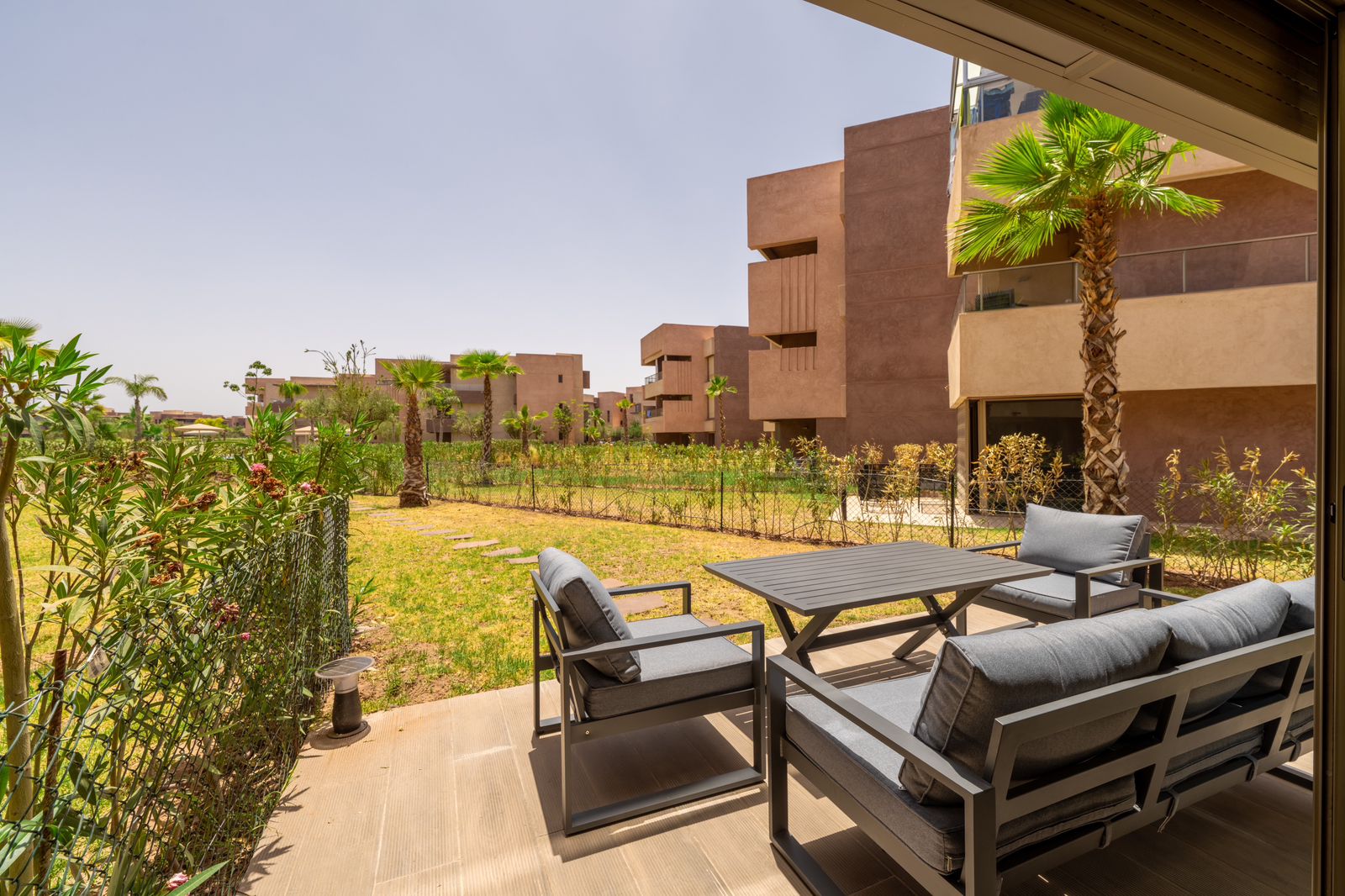 DĂ©couvrez ce superbe appartement en rez-de-jardin, situĂ© dans la rĂ©sidence sĂ©curisĂ©e Prestigia â EntrĂ©e Saphir, Ă quelques minutes du centre de Marrakech.